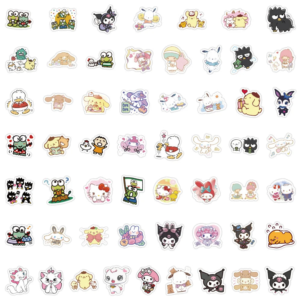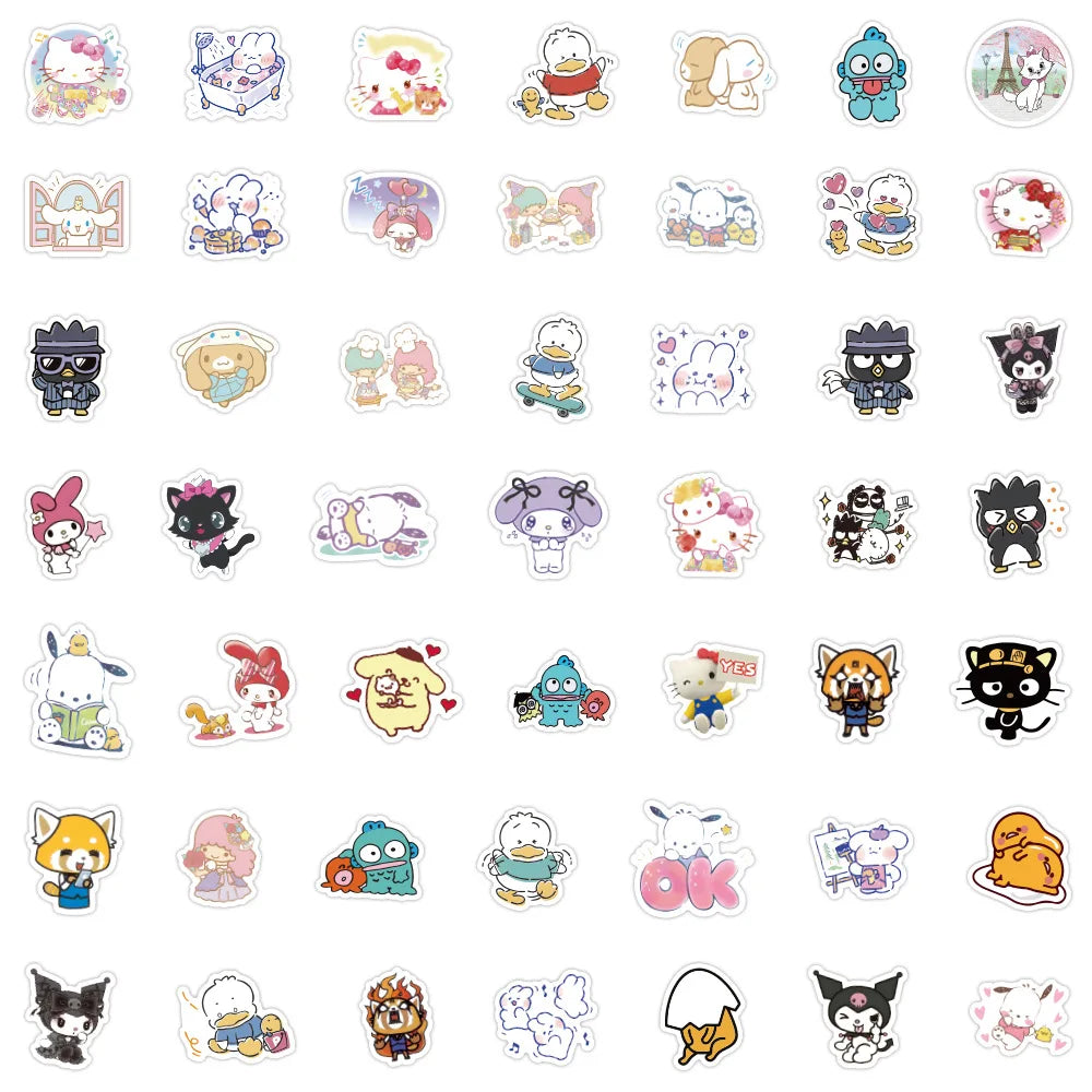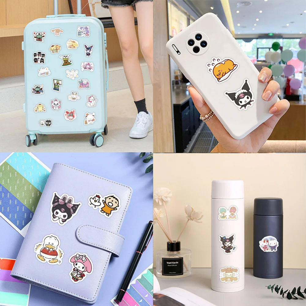 100Pcs Sanrio Kawaii Cartoon Hello Kitty Cinnamoroll Stickers My Melody Kuromi Suitcase Laptop DIY Cute Sticker Decal