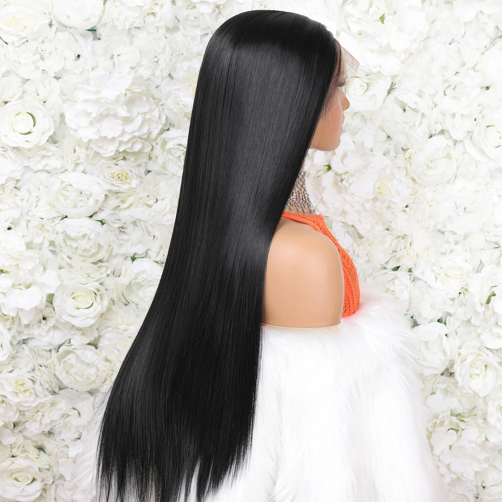 13X4 Lace Frontal Wig Synthetic Long Soft Straight Prepluck Hairline Baby Hair Cosplay Daily Party Layered Glueless Black Color