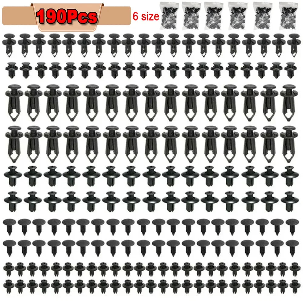190PCS Car Retainer Clips 6 Sizes – Automotive Plastic Fasteners Kit for Auto Trim Panel Bumper Body Repair Tools