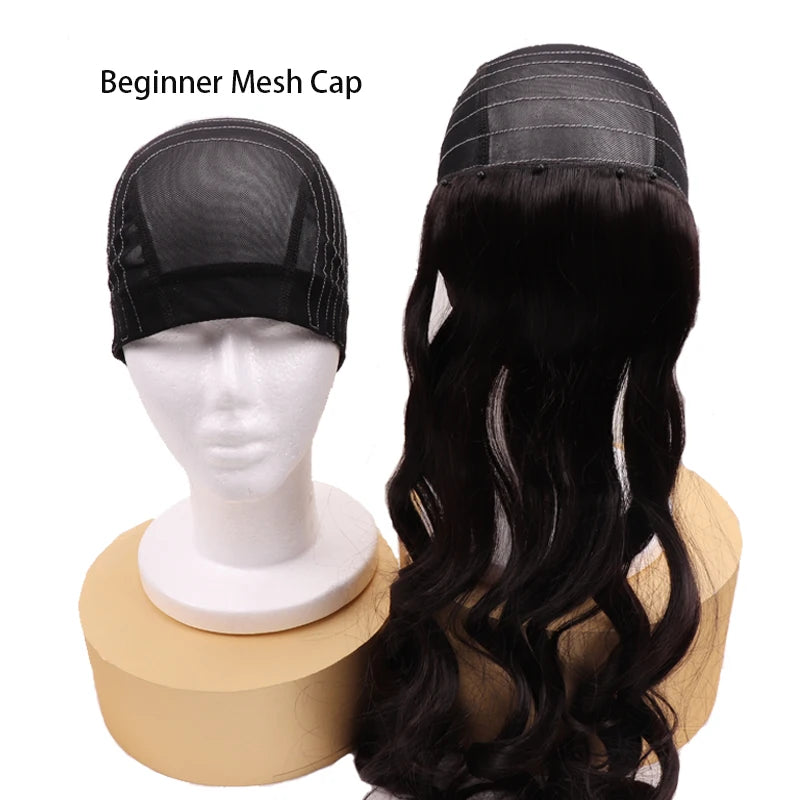1Pcs Glueless Mesh Cap With White Line For Wig Making Black Frontal Map Cap With Guideline For Beginner Hairnet 4*4 Lace Closure