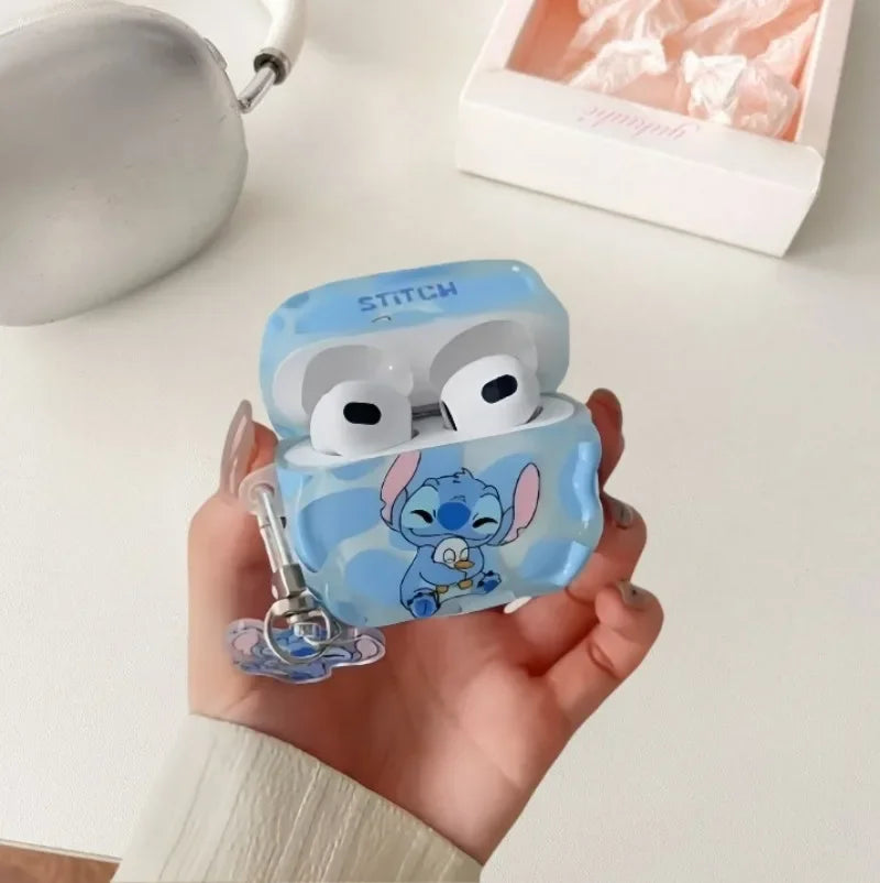 Cartoon Stitch Earphone Case for Apple AirPods 1 2 3 Pro 2 Case Cute Earphones Case Air Pods 4 Protective Cover With Hook