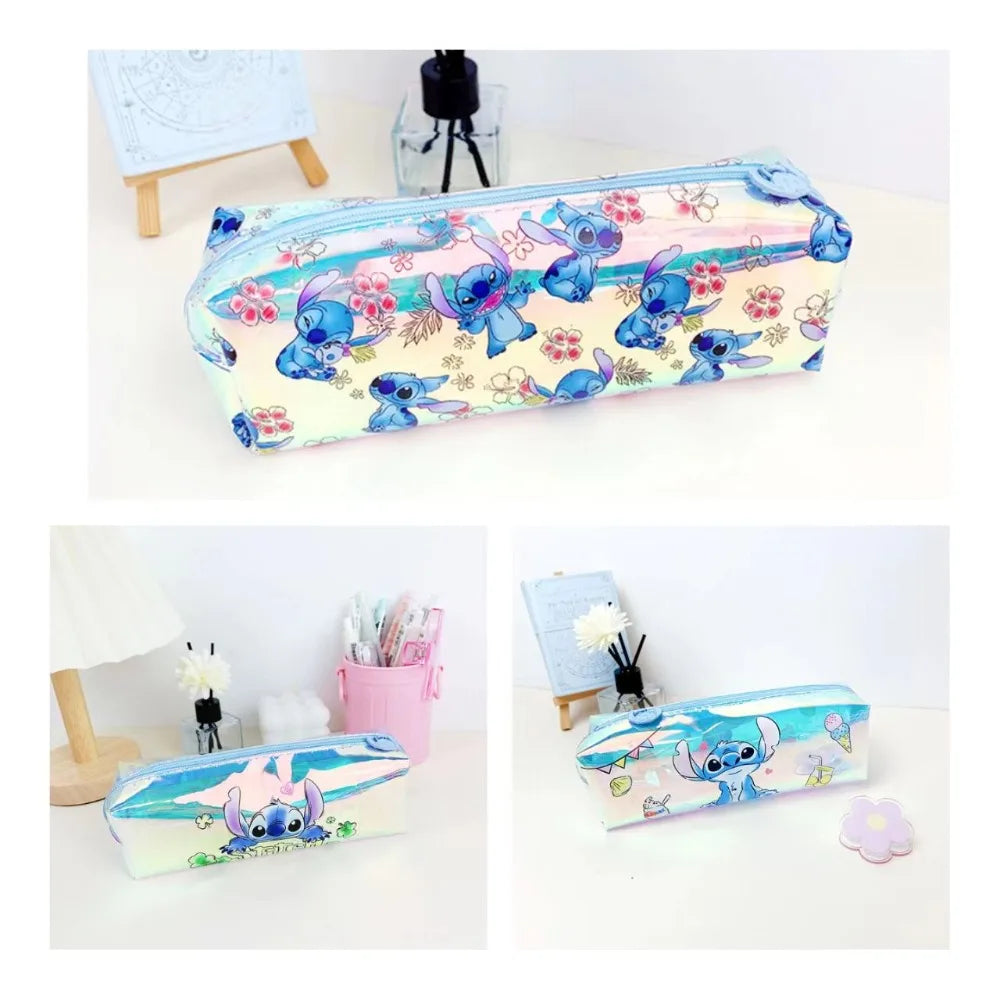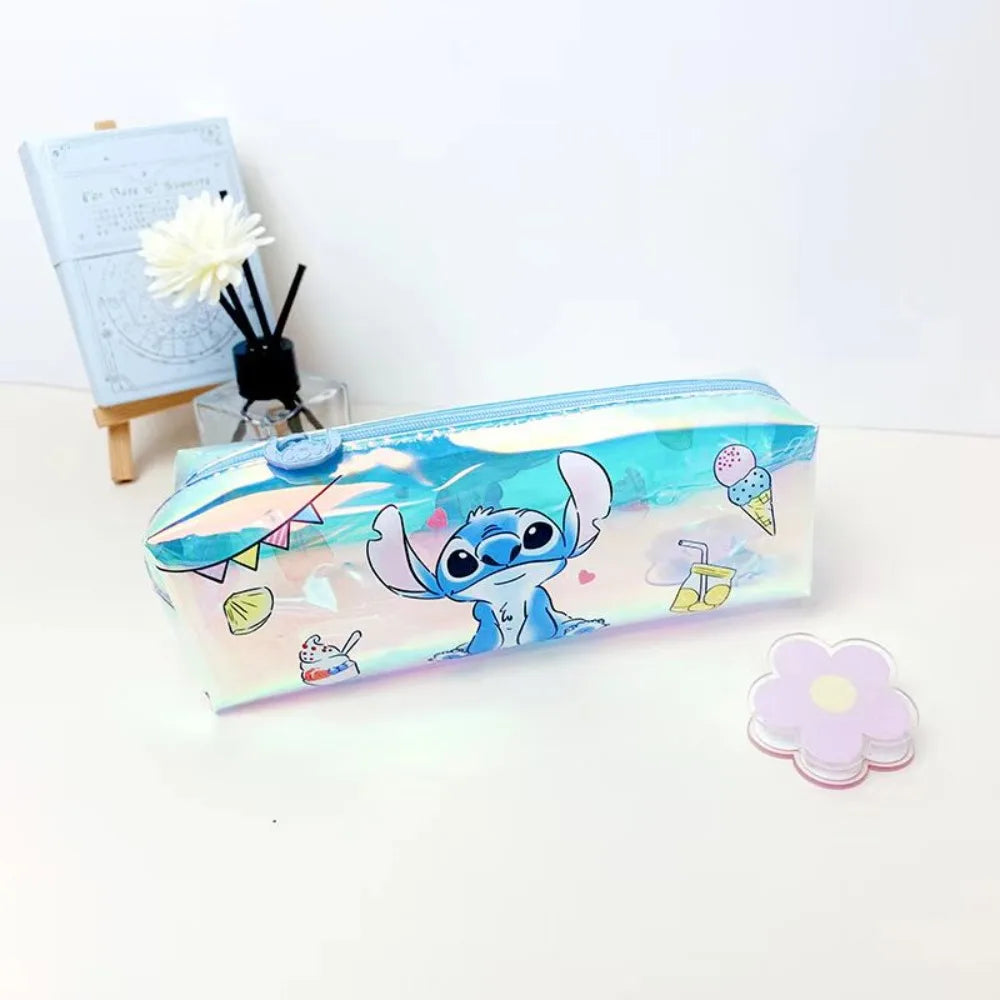 Disney Stitch Cartoon Student Stationery Laser Pencil Bag TPU Waterproof Multifunction Stationery Storage Bag