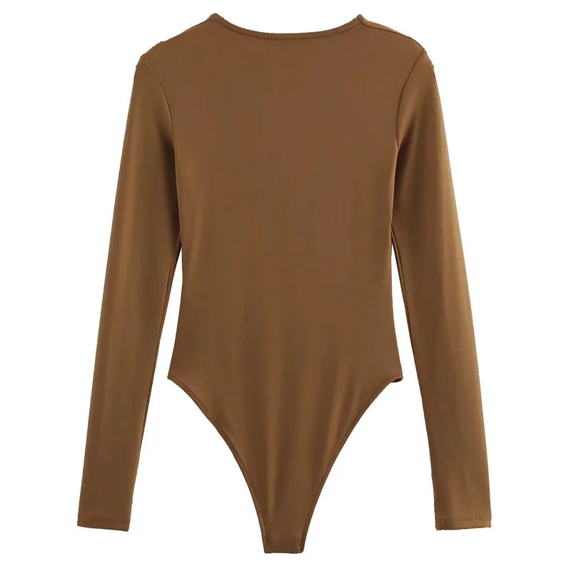 HXAO 2025 Brown Top Bodysuit Women Spring Body Sexy Women Long Sleeve Body Woman Black Spandex Bodysuit Resort Thongs Rave Oufit