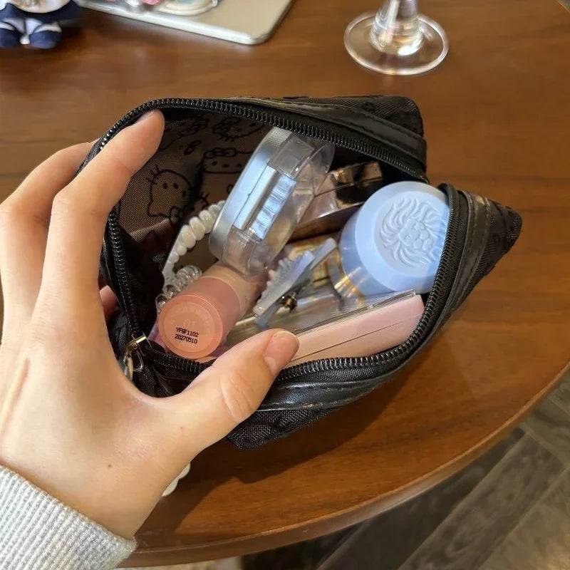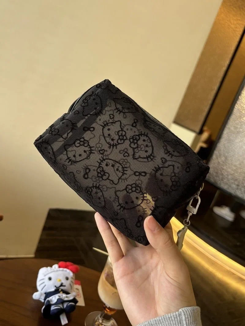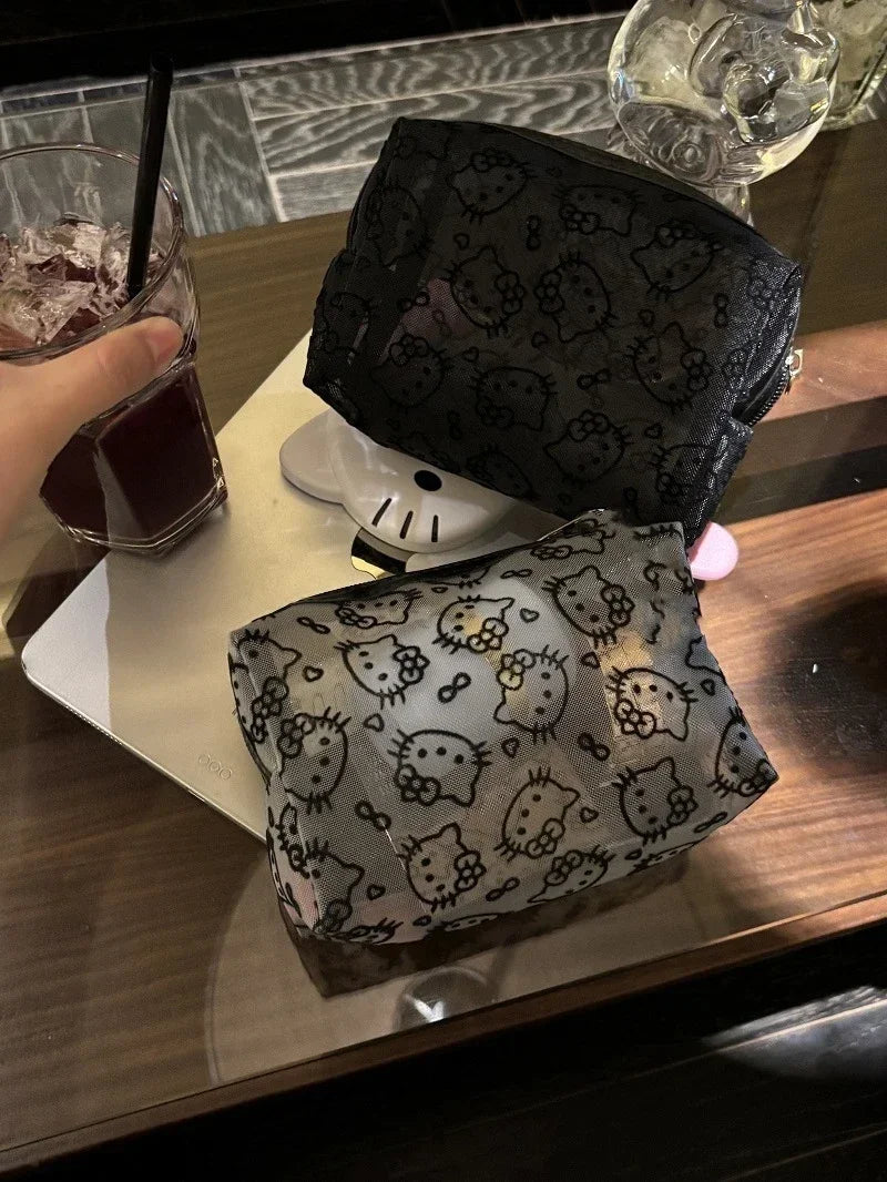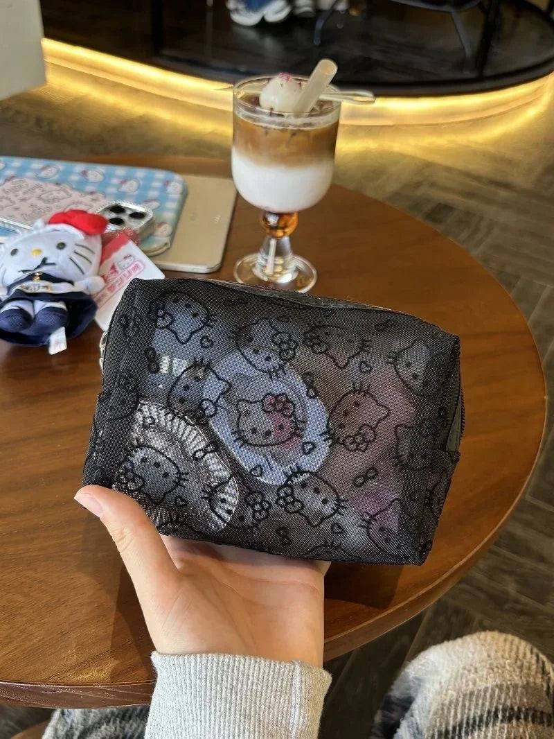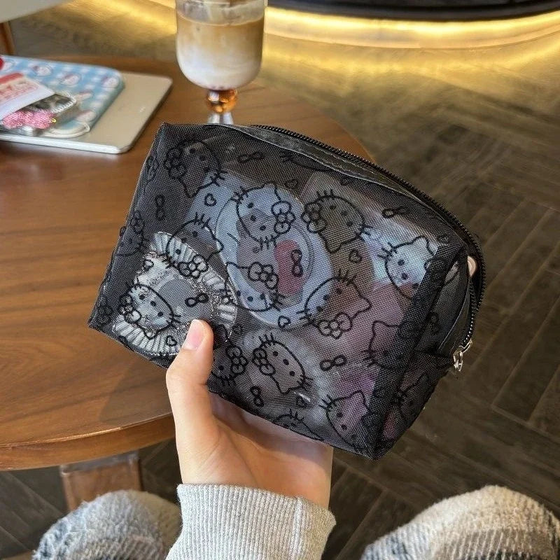 New Hello Kitty Mesh Material Cosmetics Storage Bag Creative High-Capacity Portable Zipper Handbag Cute Girls' Supplie