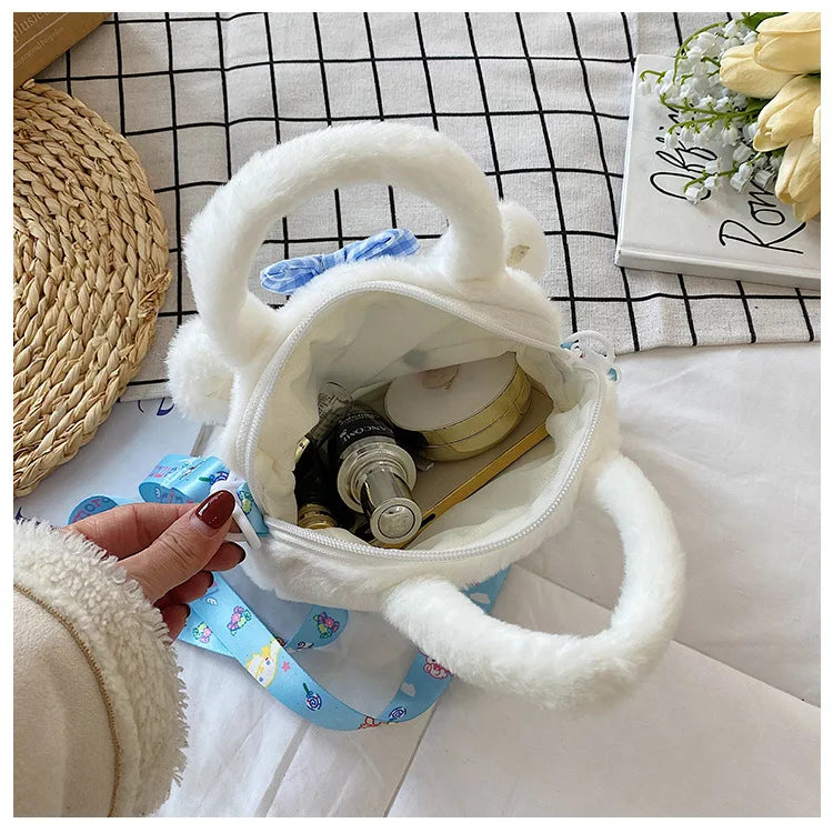 Sanrio Plush Bag Kawaii Kuromi Cinnamoroll Melody Cartoon Anime Handbag Crossbody Cosmetic Travel Storage Bags Women Girls Gifts