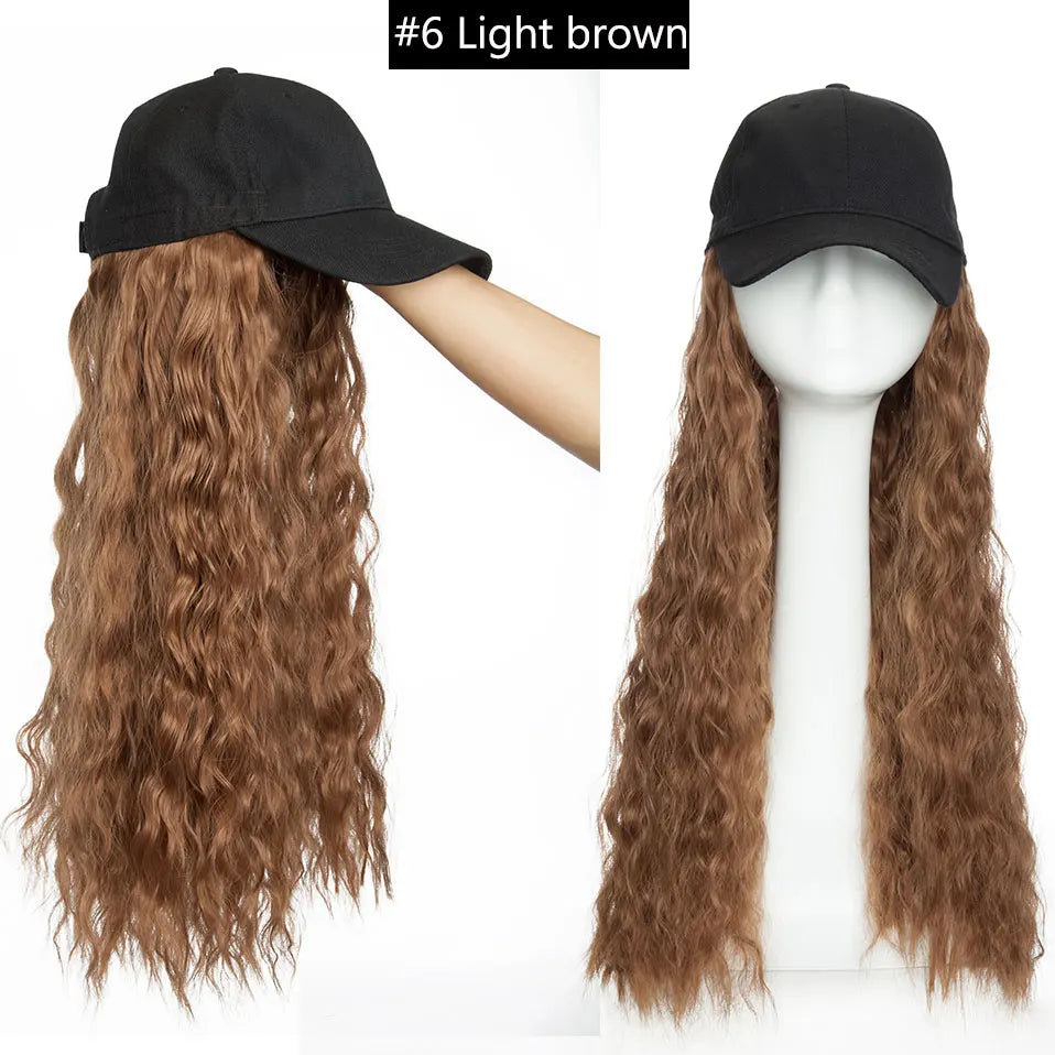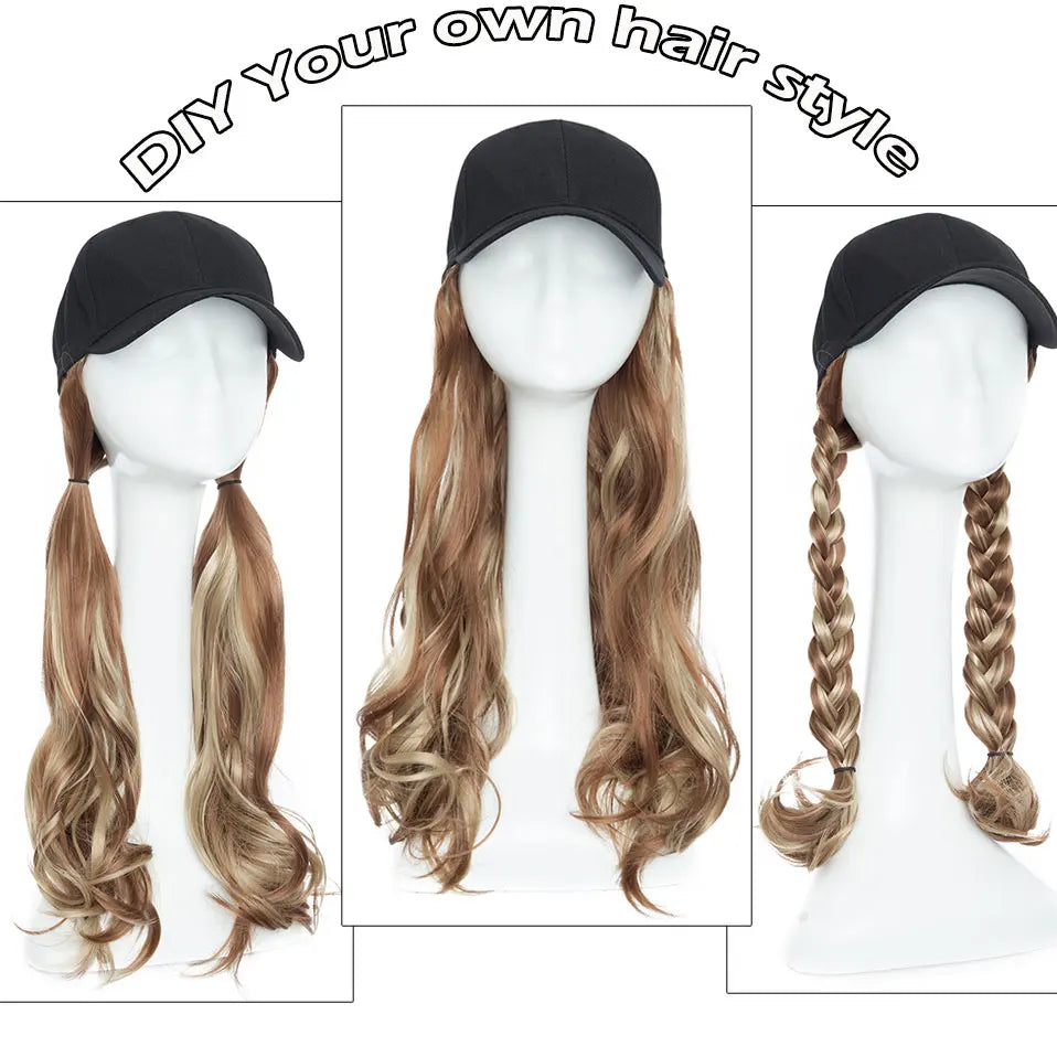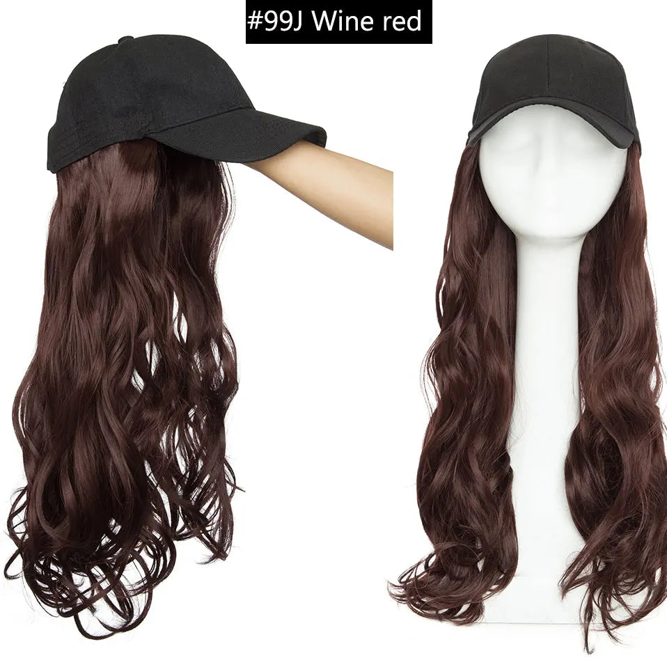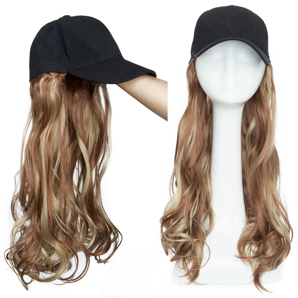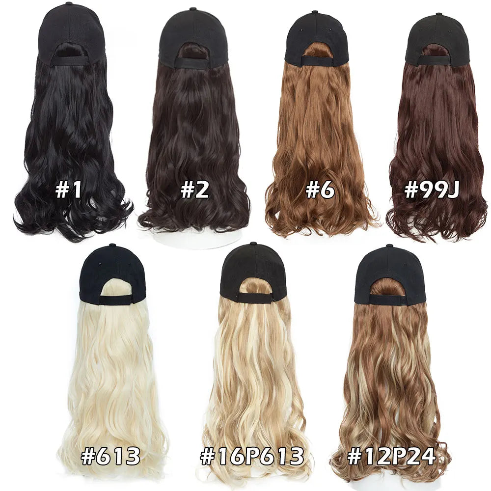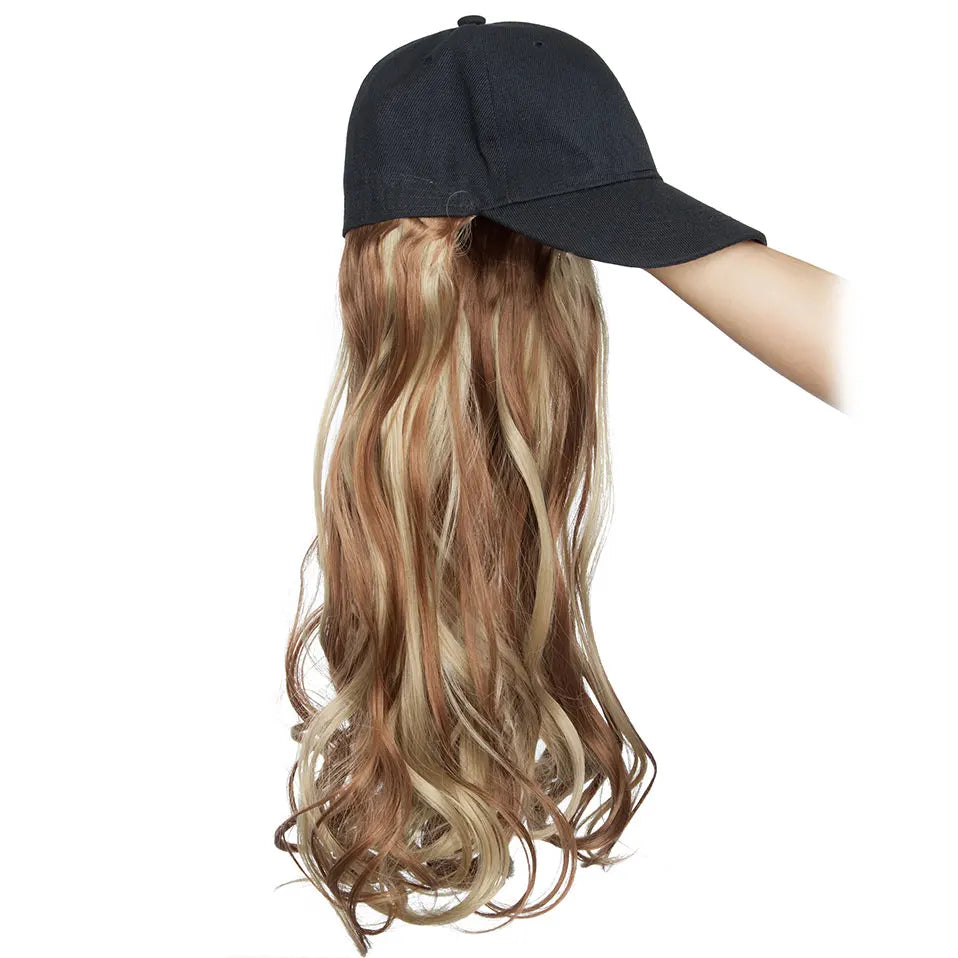 Snoilite synthetic long wavy baseball cap with hair extension hair integrate cap hat for women girl daily hair style wig