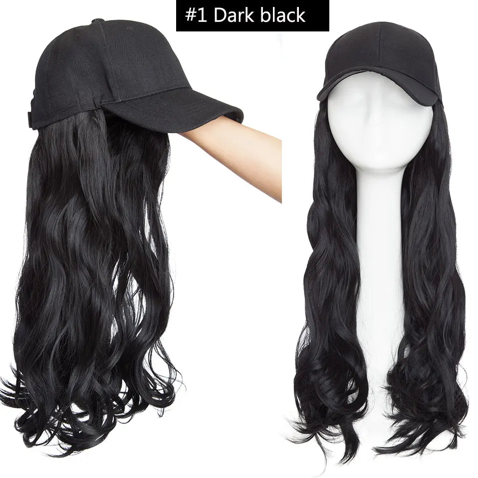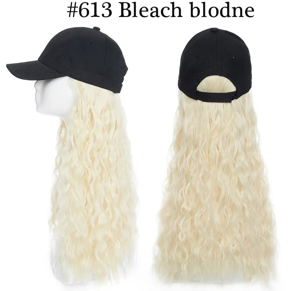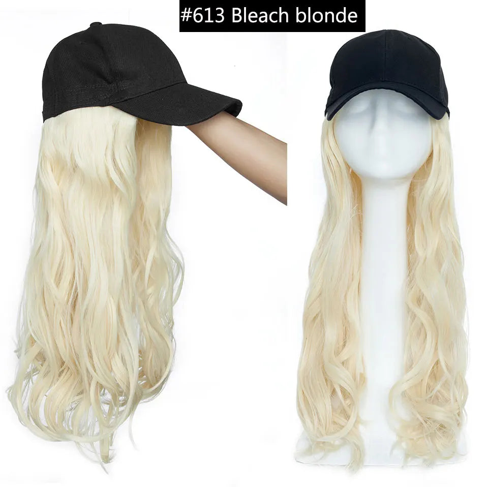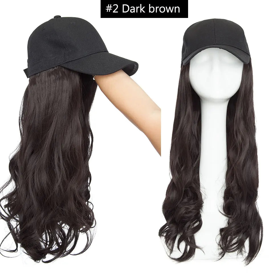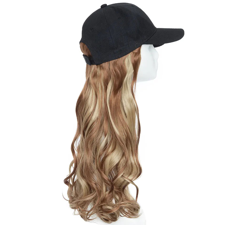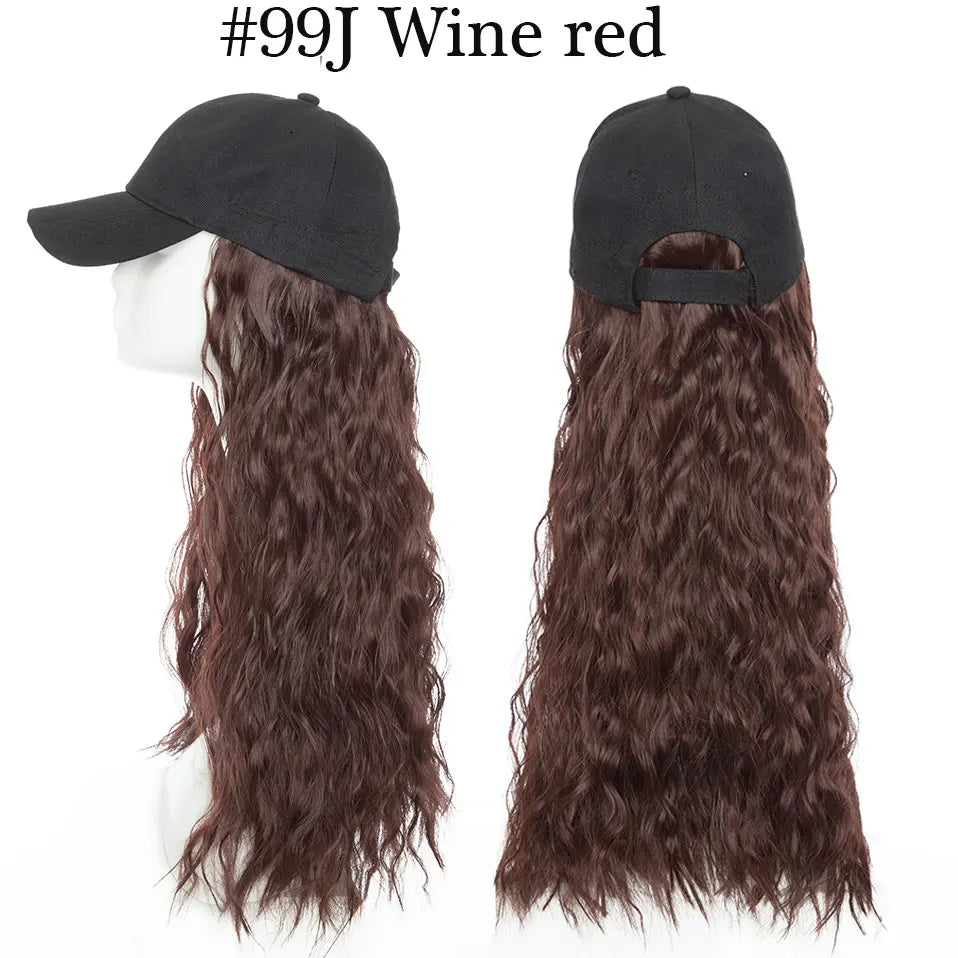 Snoilite synthetic long wavy baseball cap with hair extension hair integrate cap hat for women girl daily hair style wig