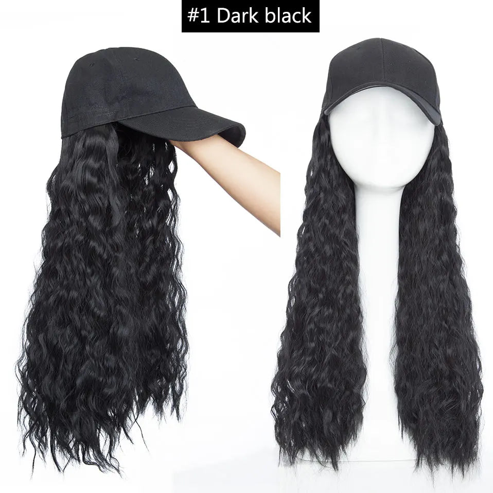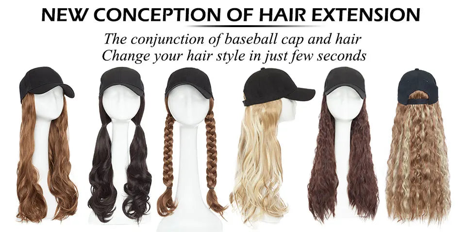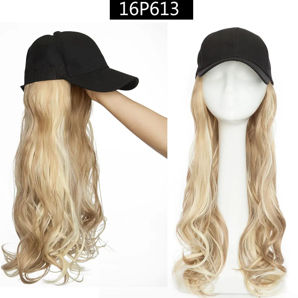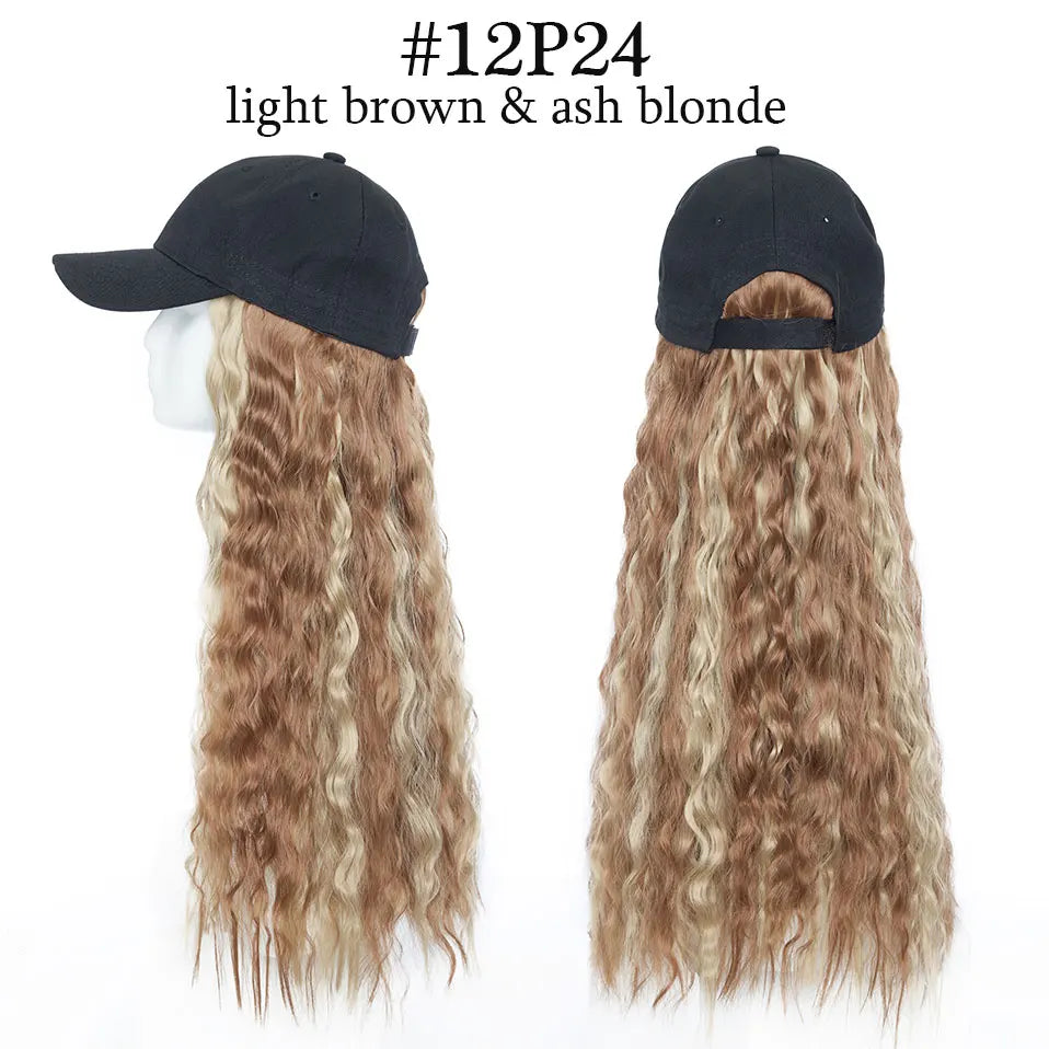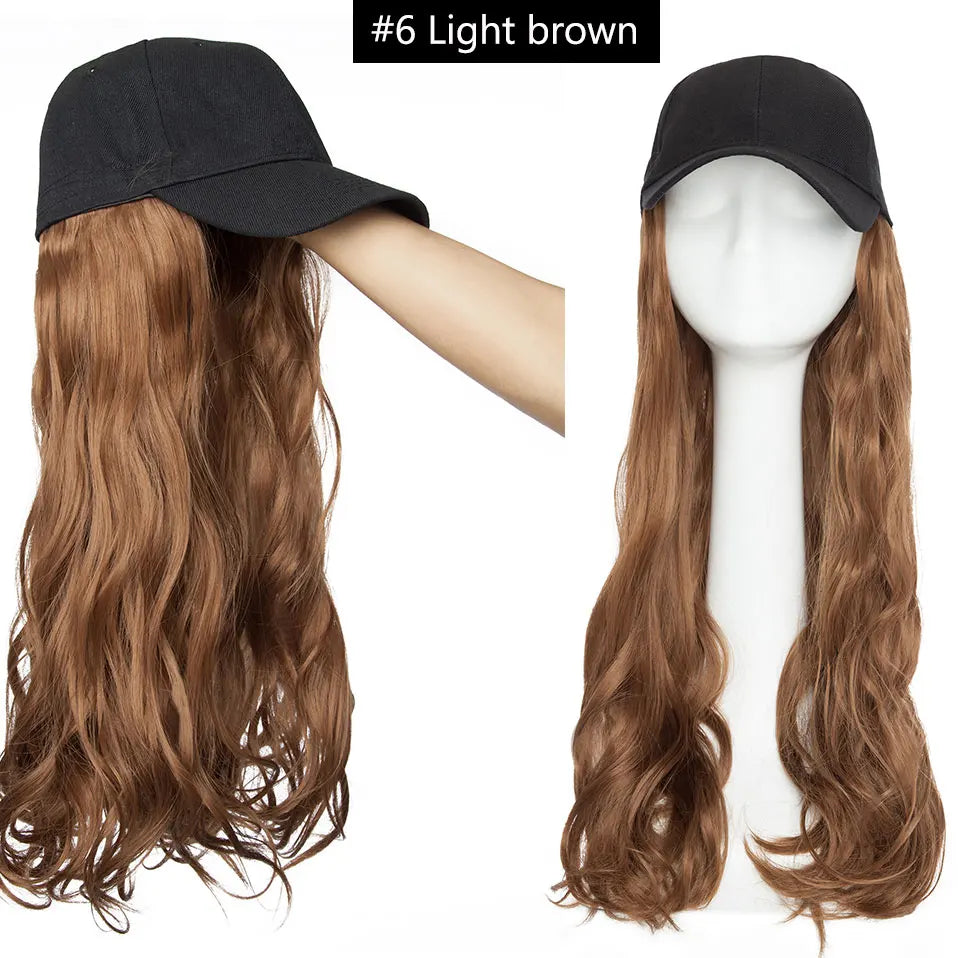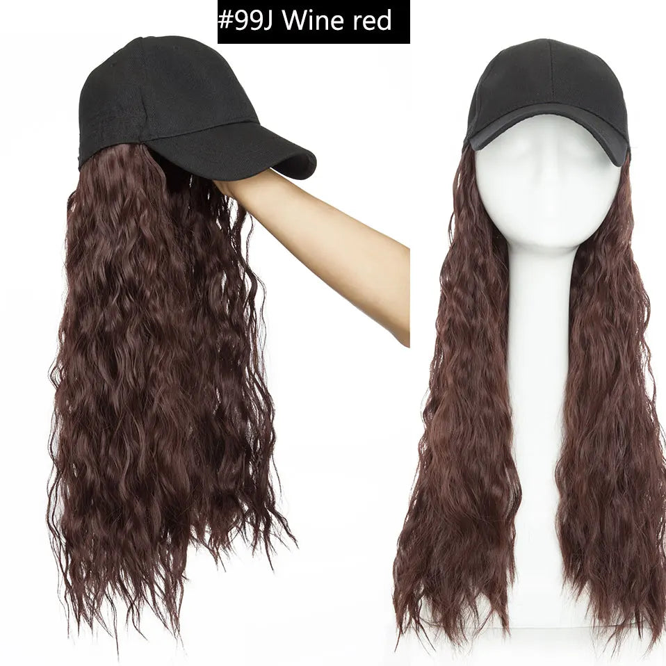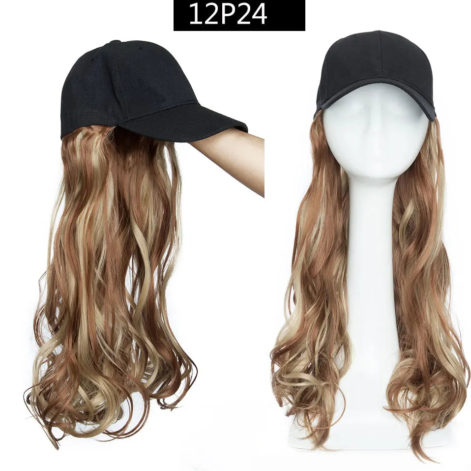 Snoilite synthetic long wavy baseball cap with hair extension hair integrate cap hat for women girl daily hair style wig