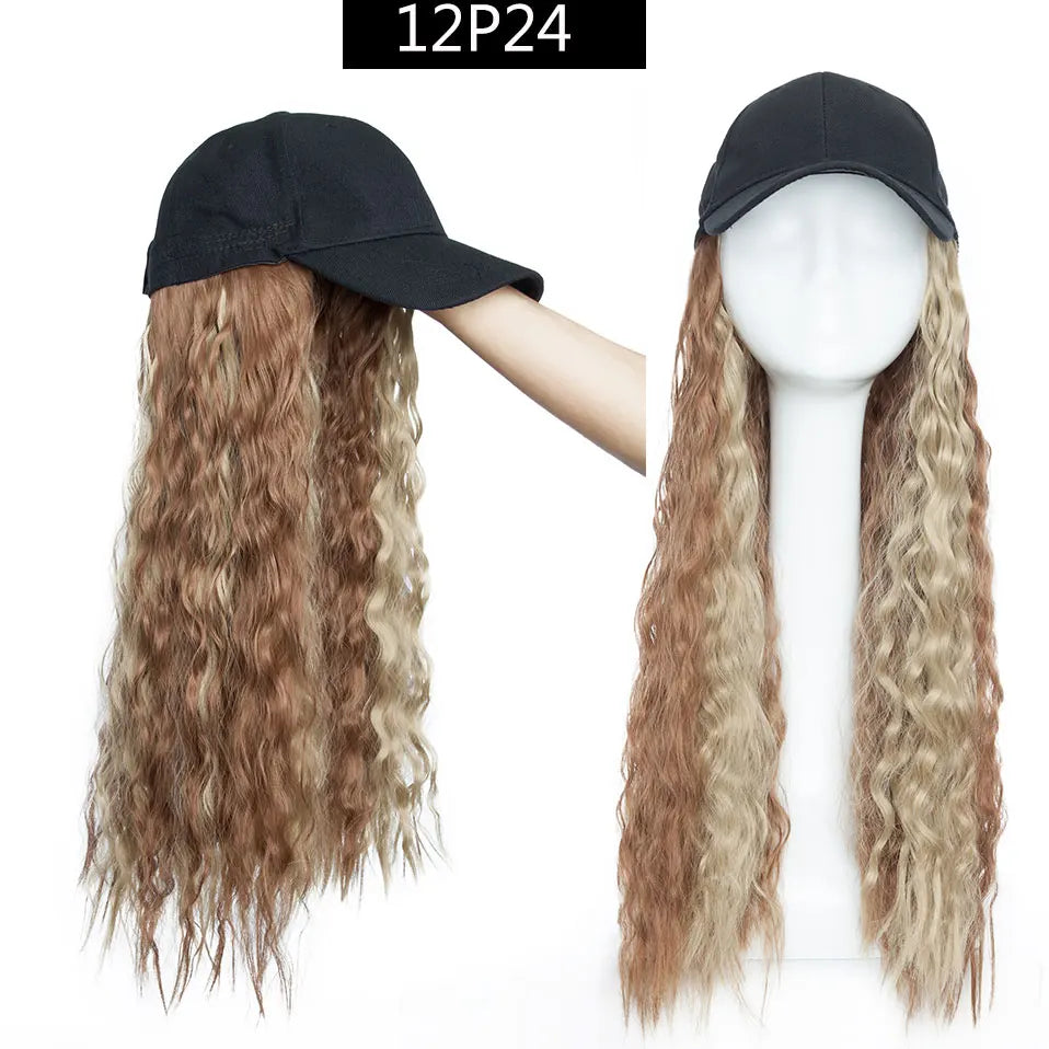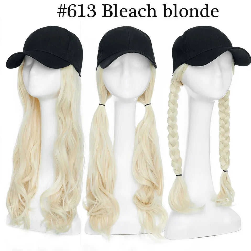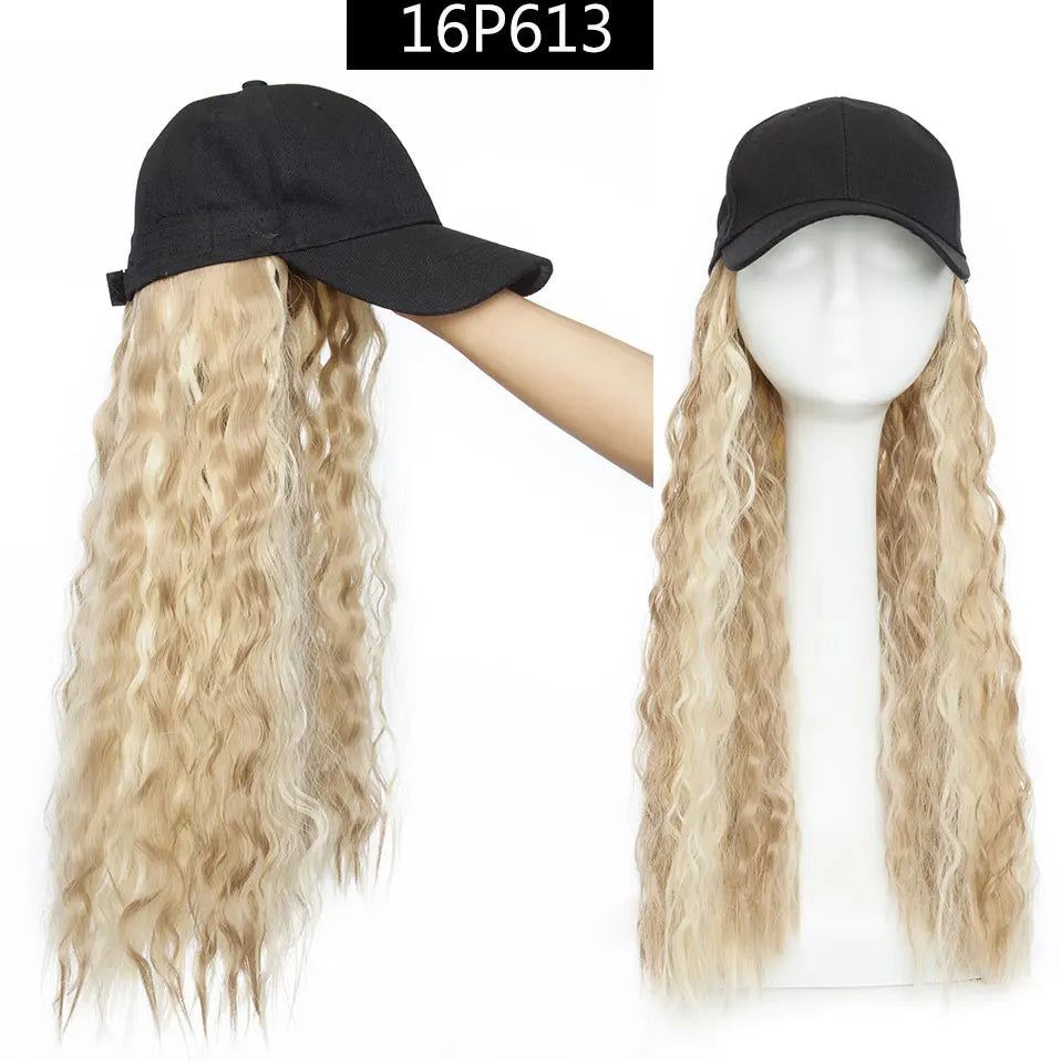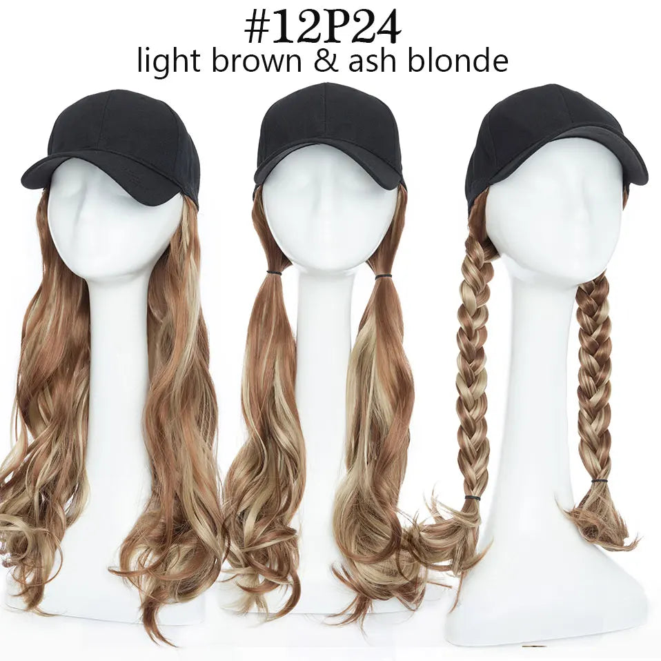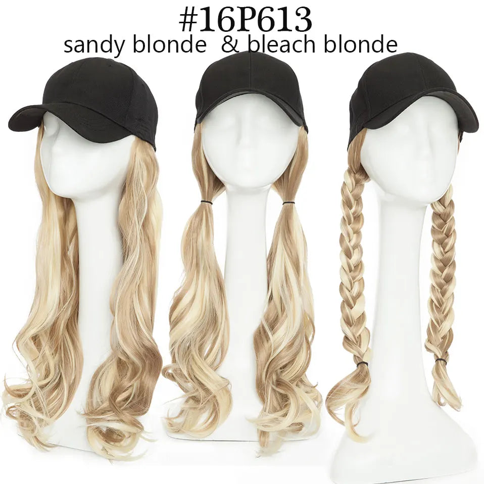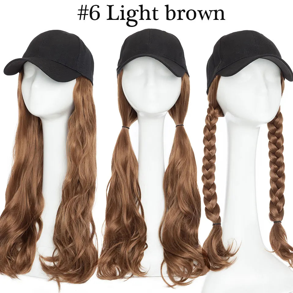 Snoilite synthetic long wavy baseball cap with hair extension hair integrate cap hat for women girl daily hair style wig