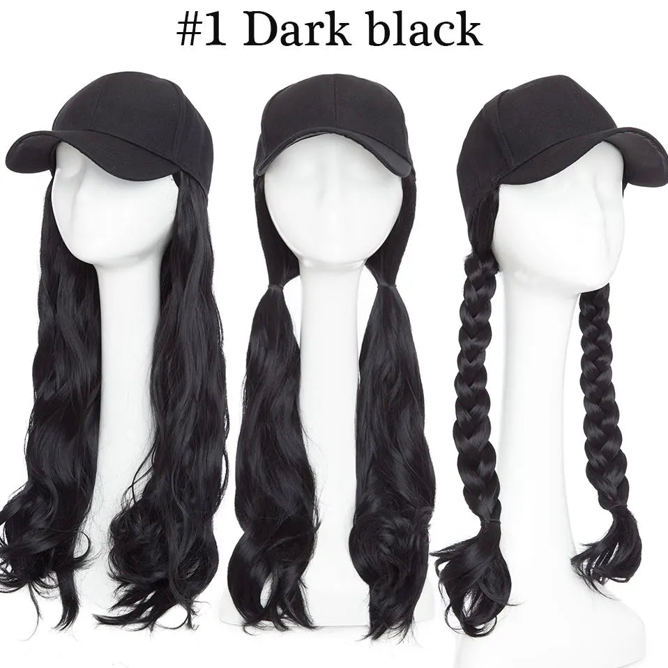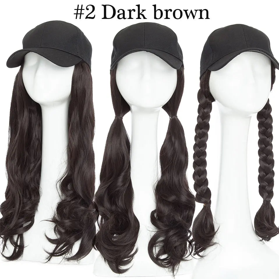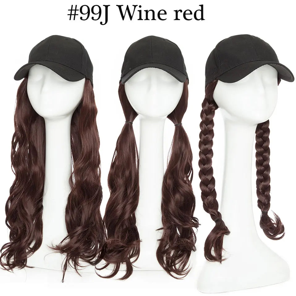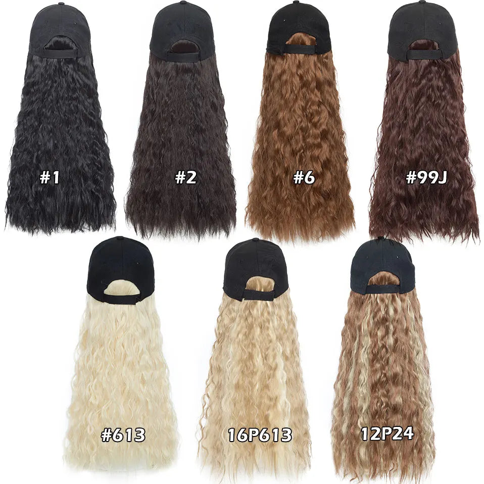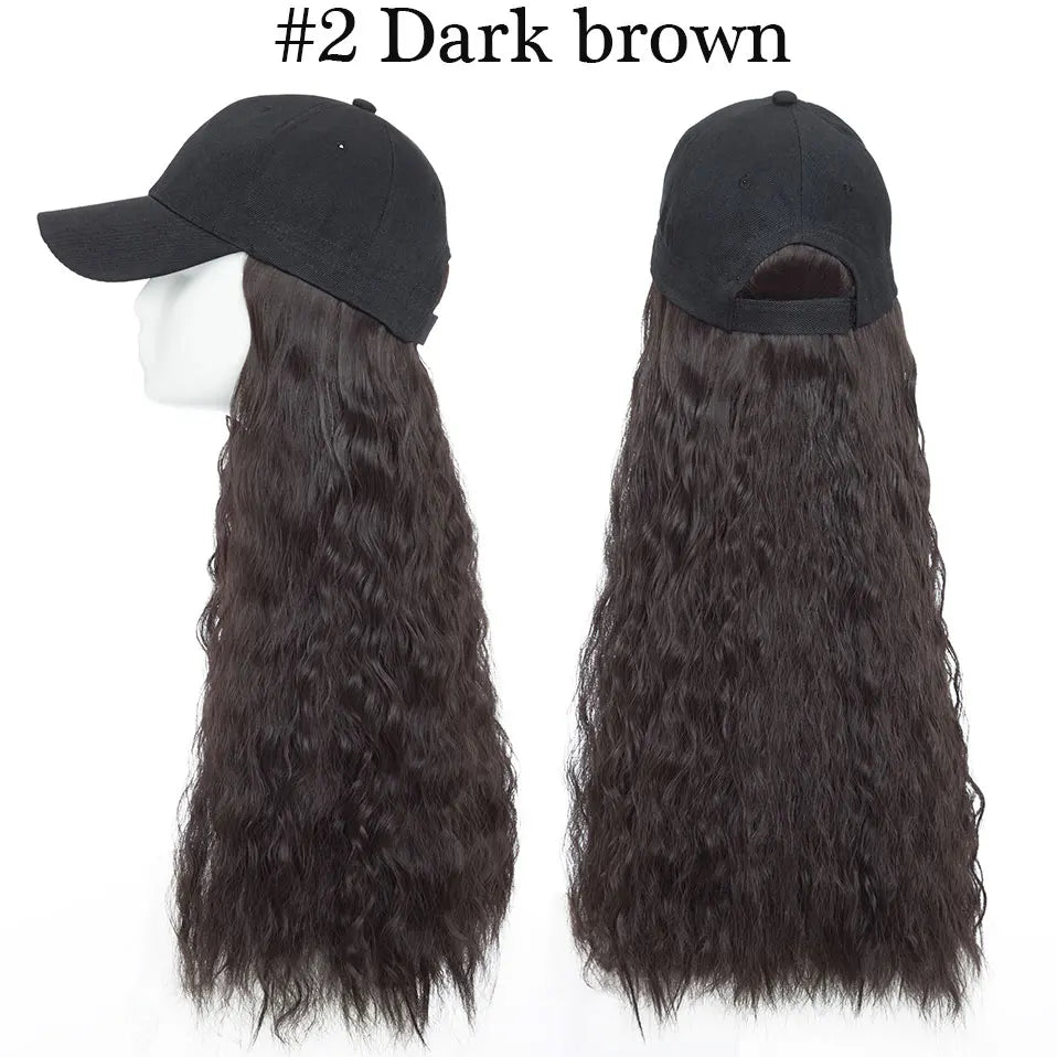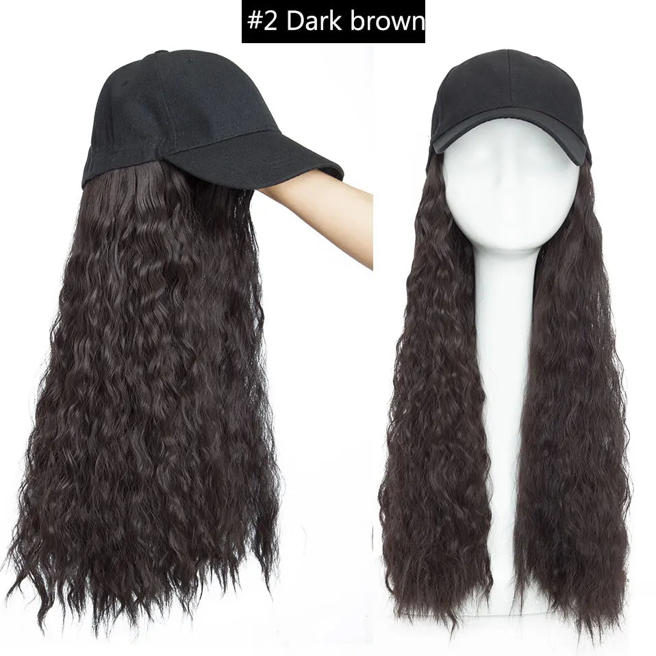 Snoilite synthetic long wavy baseball cap with hair extension hair integrate cap hat for women girl daily hair style wig