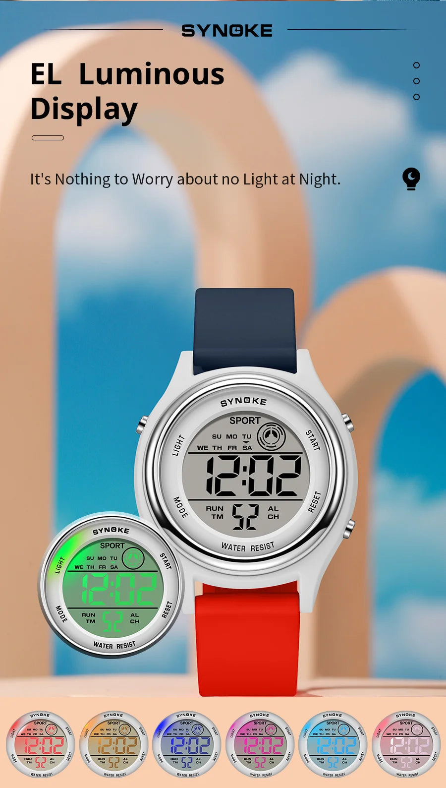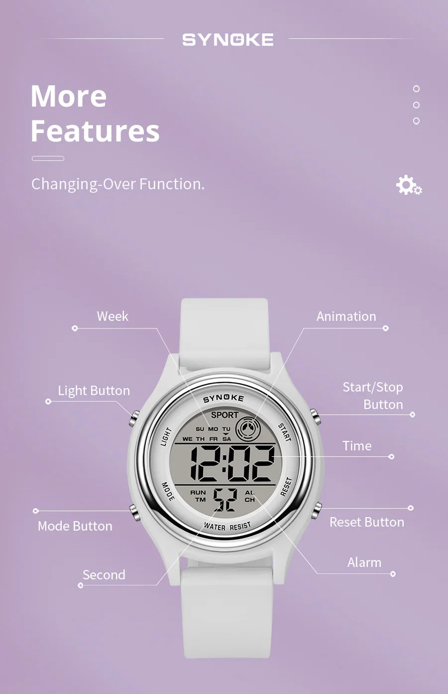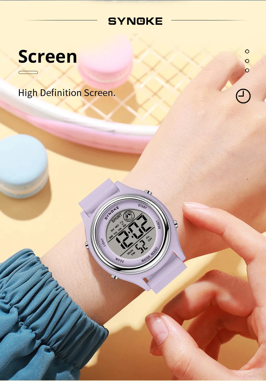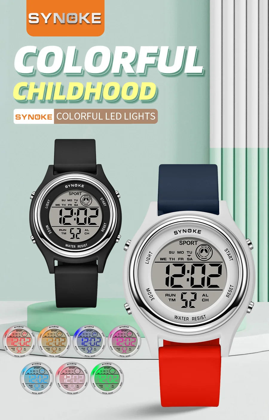 SYNOKE Colorful Children Seven Lights Watches Sport Students Digital Watch For Kids Waterproof Electronic Watch Shock Resist