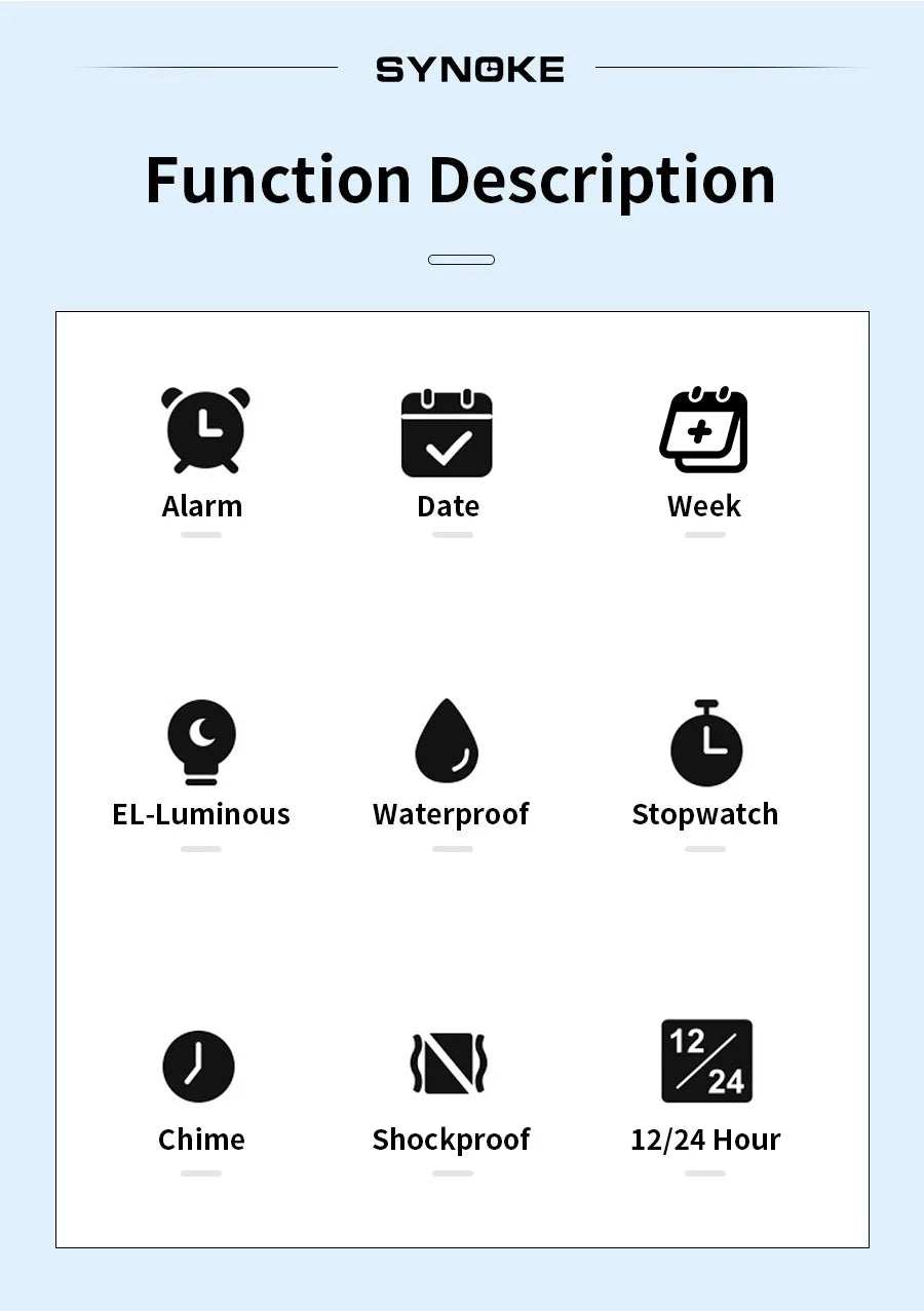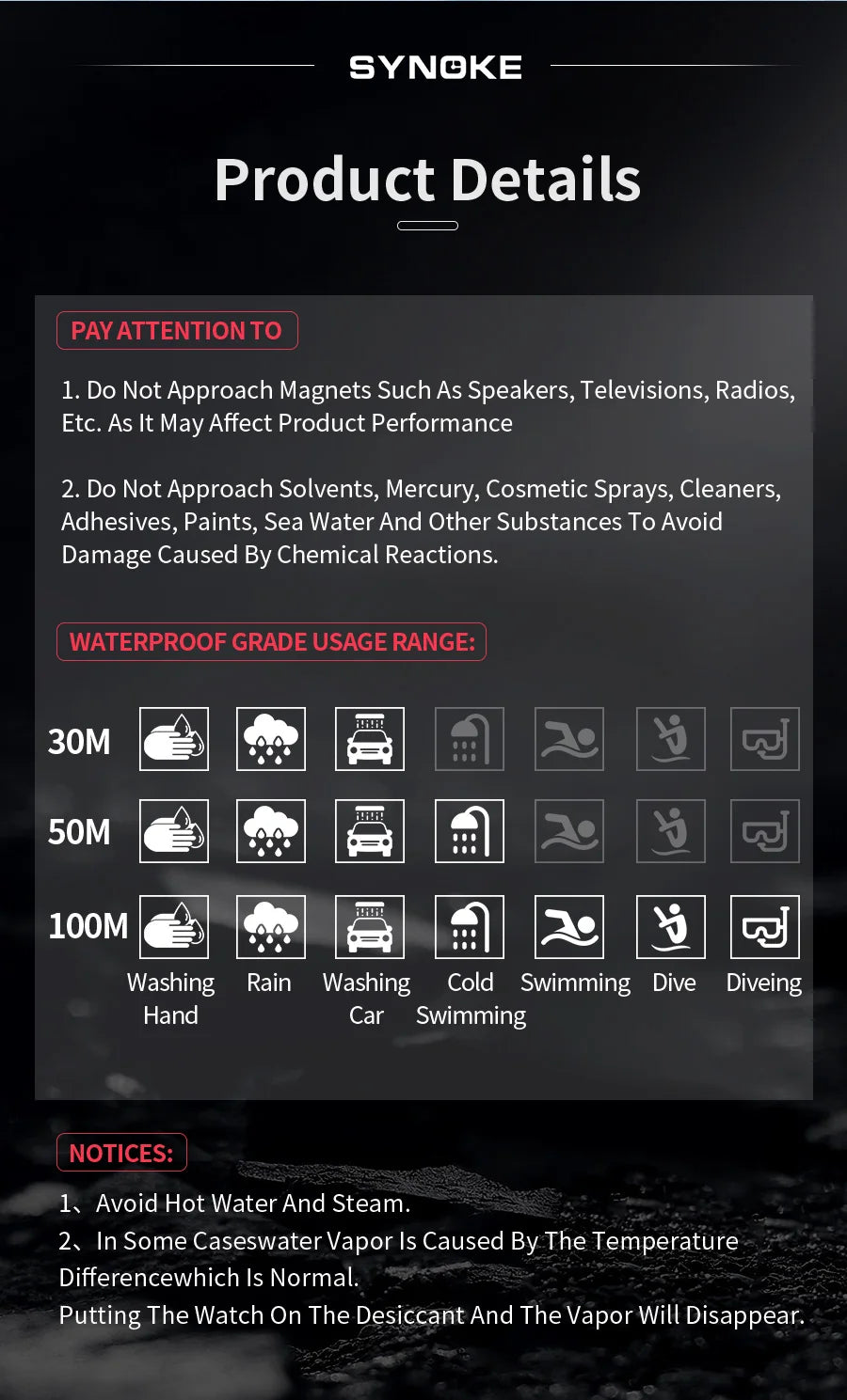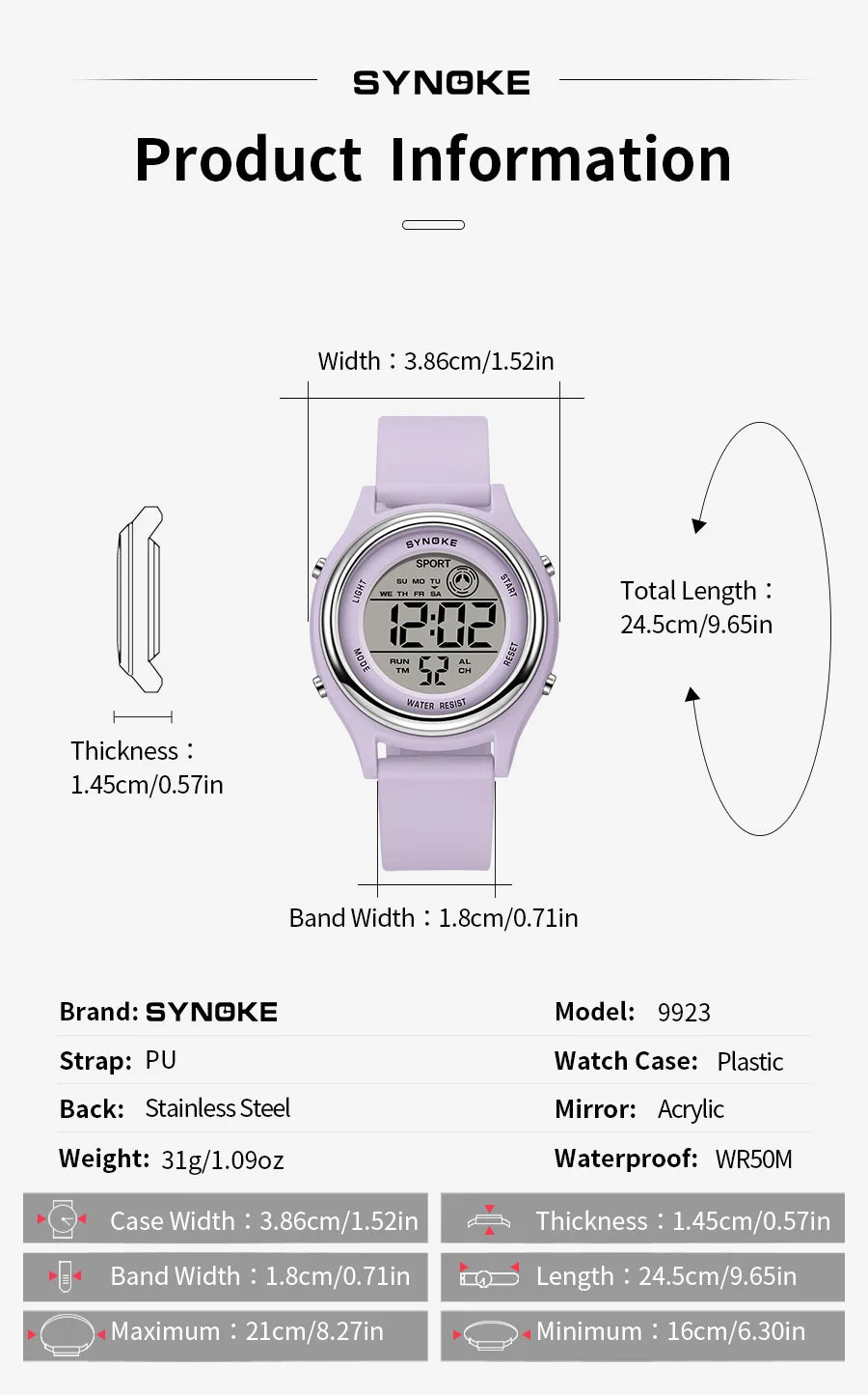 SPECIFICATIONSBand Length: 9.65Band Material Type: PlasticBand Width: 18Boxes & Cases Material: No packageBrand Name: SYNOKECase Material: PlasticCase Shape: RoundCase Thickness:...